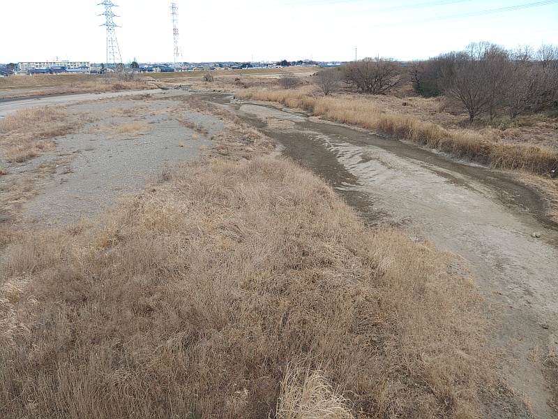 入間川上流には、名栗川、有馬ダムなどがありますが、この時期は例年でも水量が少ないです。結果的に、何年かに一度、この時期に干上がった入間川を見ることができます。今年は記録的に雨が少ないのでわりと広範囲に干上がりました。もちろん、この場所では対岸まで濡れることなく徒歩で歩いて渡れます。この前後の何か所かでも干上がっています。この前後には、池のように水が溜まっている場所があります。